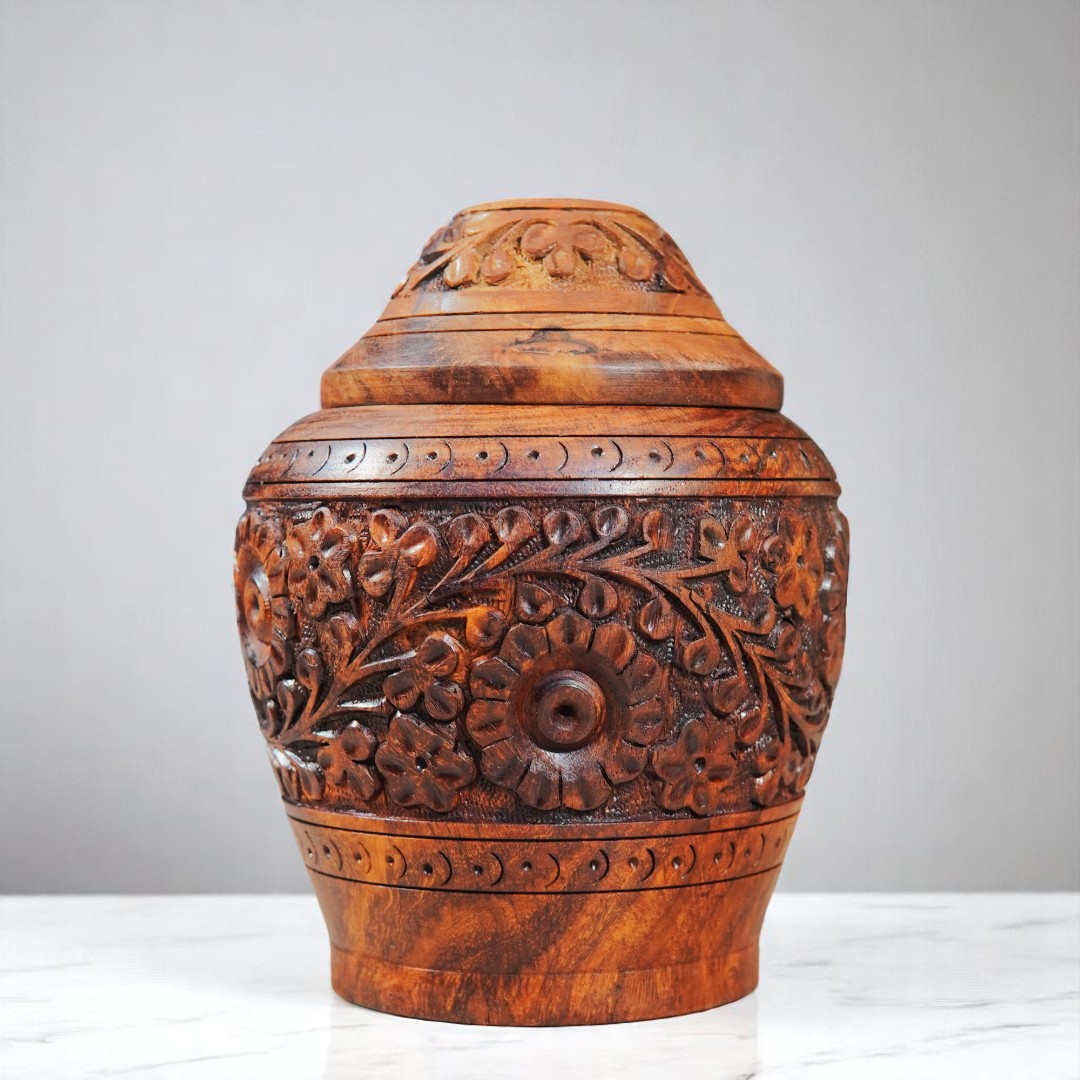 Add a touch of metallic elegance to your table with our Candy Jar, where warm brass accents meet rich wood tones. This stunning serving piece features hand-hammered brass detailing that catches the light beautifully. Available in seven sizes with 5+ intricate designs, it’s perfect for displaying chocolates, nuts, or decorative items. The smooth wooden interior contrasts elegantly with the textured metal exterior, creating visual and tactile interest. Use it as a centerpiece during gatherings or as an everyday accent to elevate your living space. A harmonious blend of traditional metalwork and woodcraft that brings timeless sophistication to any setting.